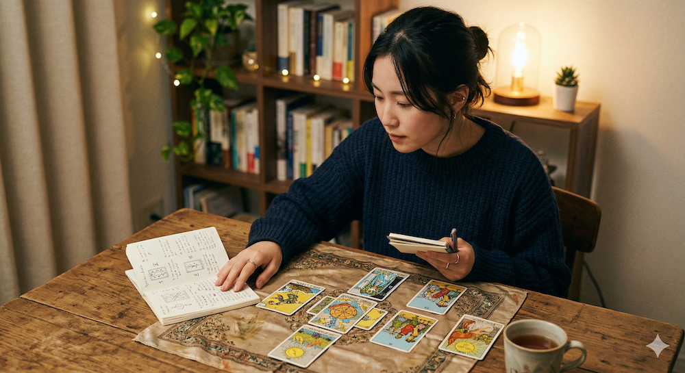 質問、出たカード、第一印象、最終解釈、その後どうなったかを記録すると、自分の読みグセが見えてきます。「当たる・当たらない」の感覚も、検証を続けることで精度高く把握できるようになります。